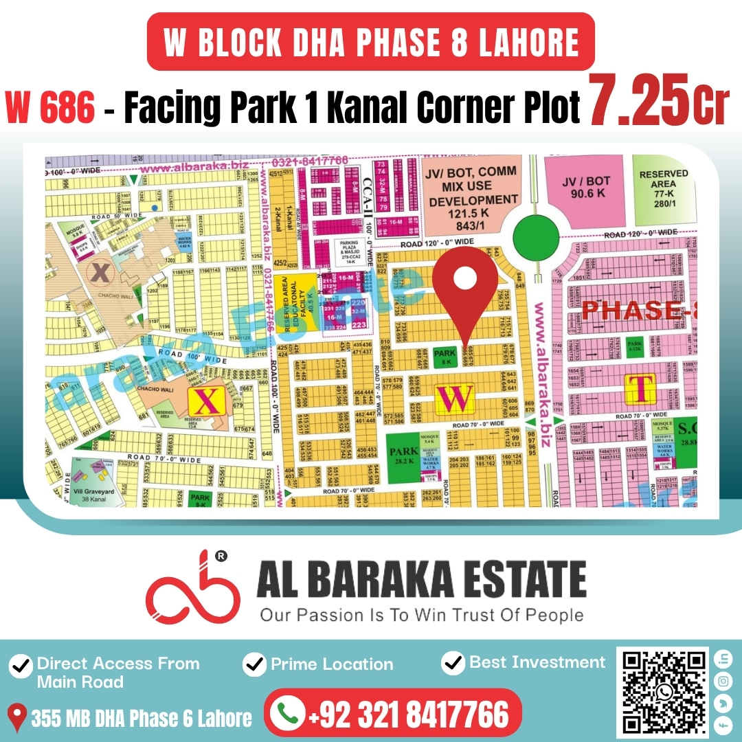 1 Kanal Corner Facing Park Plot for Sale – DHA Phase 8 Lahore