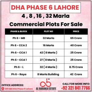 4, 8, 16 & 32 Marla – Commercial Plots for Sale โ DHA Phase 6 Main Boulevard Lahore