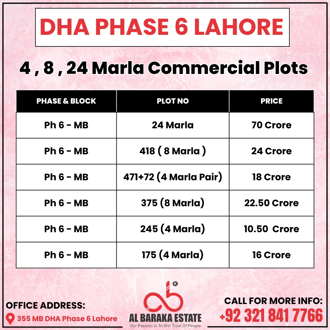 4, 8 & 24 Marla – Commercial Plots for Sale โ DHA Phase 6 Lahore