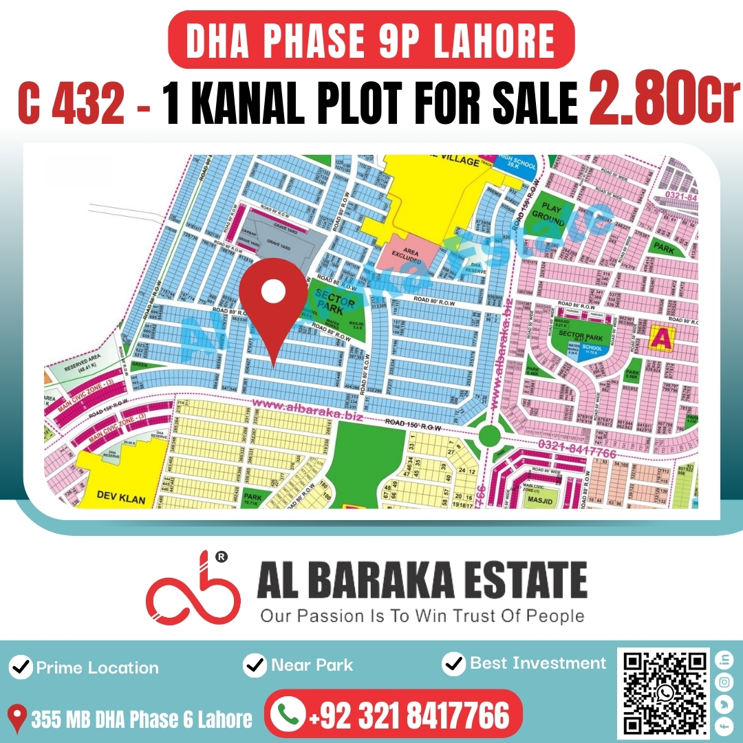 Looking for the perfect spot to build your dream home or make a smart investment? This 1 Kanal plot (C 432) in DHA Phase 9 Prism, Lahore offers an excellent opportunity.