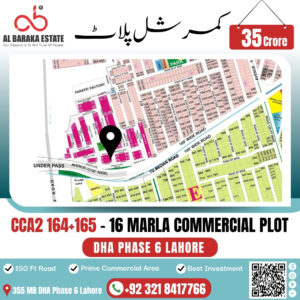 An exceptional opportunity to own 16 Marla Commercial Plots in the highly demanded CCA-2, DHA Phase 6, Lahore. Perfectly located on a 150 ft wide road, these plots are situated in a prime commercial hub, making them ideal for business ventures, corporate setups, or long-term secure investment.