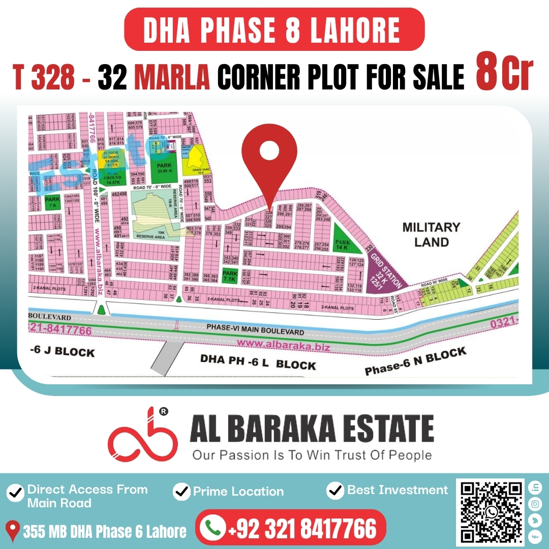 T-328 – 32 Marla Corner Plot for Sale – DHA Phase 8 Lahore