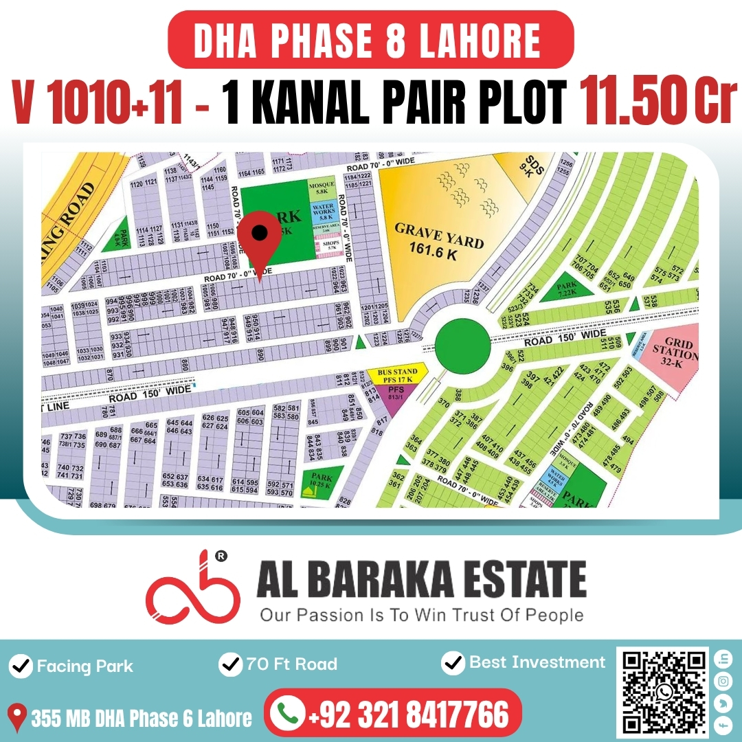 V1010+11 – 1 Kanal Pair Plot for Sale in DHA Phase 8, Lahore